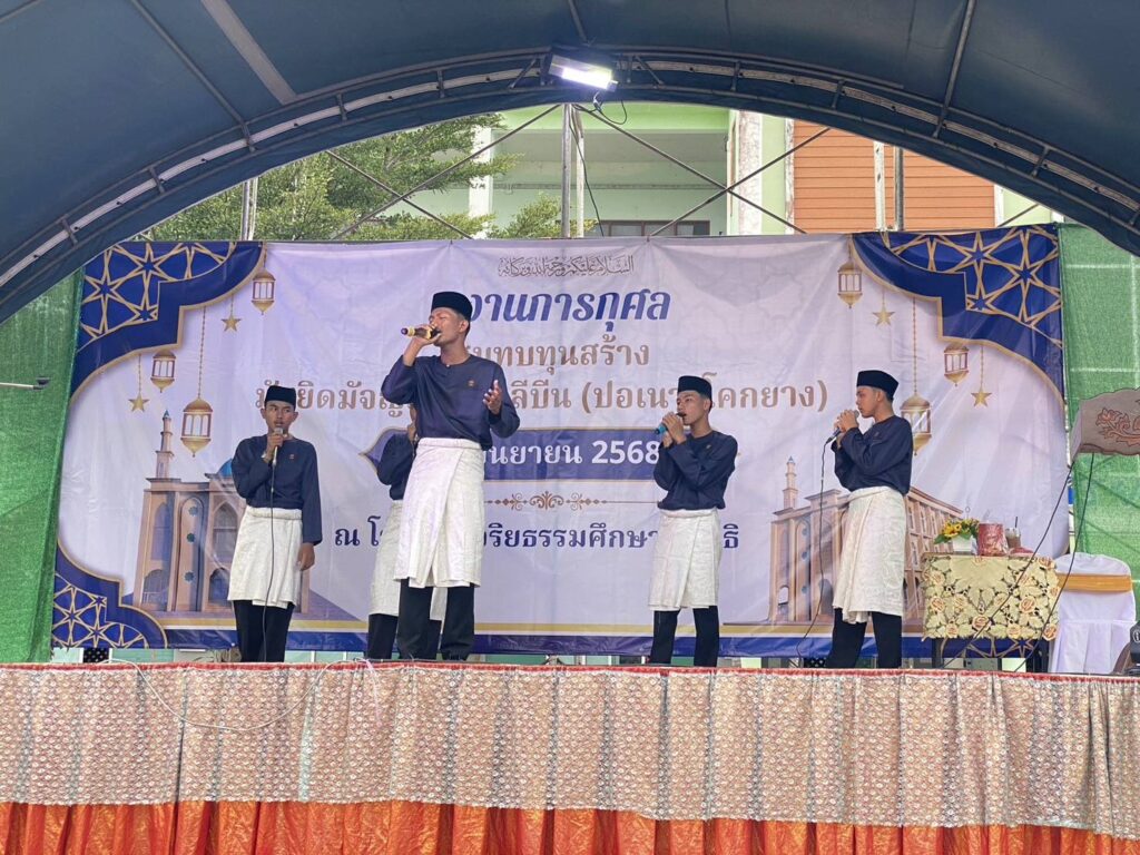 วันที่ 9 กันยายน 2568 งานการกุศลมัสยิดมัจญมูอิตตอลีบีน โดยชาวบ้านร่วมกับโรงเรียนจริยธรรมศึกษามูลนิธิ จัดงานการกุศลเพื่อสมทุนการบูรณะอาคารและขยายพื้นที่ใช้สอยมัสยิดหลังเก่าที่มีอายุการใช้งานมานาน ประกอบกับปัจจุบันเนื้อที่ในการใช้ประกอบศาสนกิจน้อยไม่เพียงพอ สำหรับเบื้องต้นประเมินราคาทั้งหมดต้องใช้งบประมาณ 5000000 บาท ในงานก็มีกิจกรรมเวทีของนักเรียน และโรงเรียนต่างๆ ทั้งในพื้นที่ และต่างพื้นที่ และสมาคมคุรุสัมพันธ์อิสลามแห่งประเทศไทย ในพระบรมราชูปถัมภ์ อ่านต่อคลิก